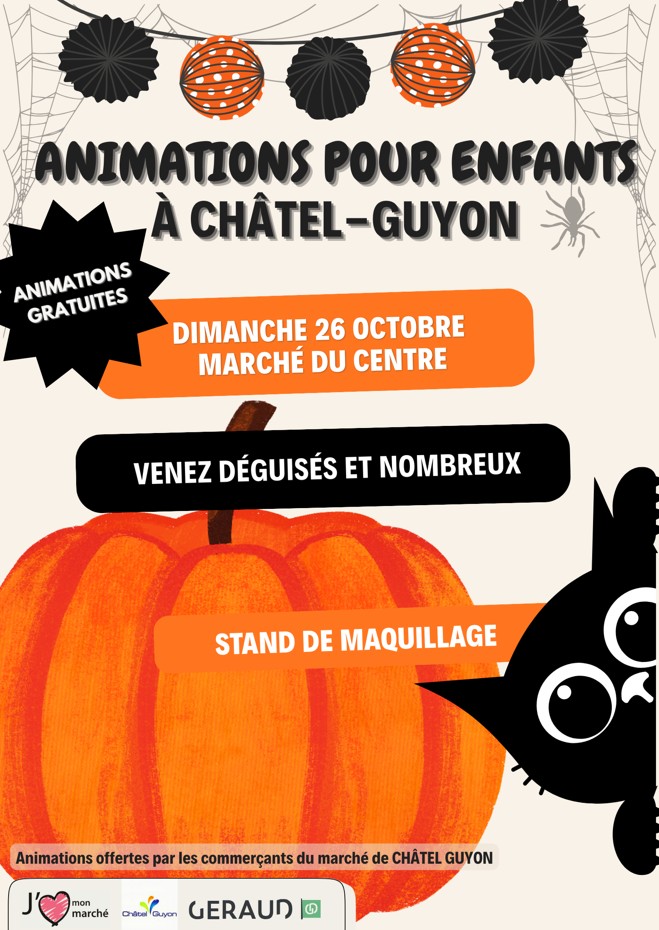 Avenue Baraduc Chatel-Guyon, FranceAmbiance festive au marché ! Les commerçants du marché vous réservent des animations et un stand de maquillage pour petits et grands. Venez déguisés !